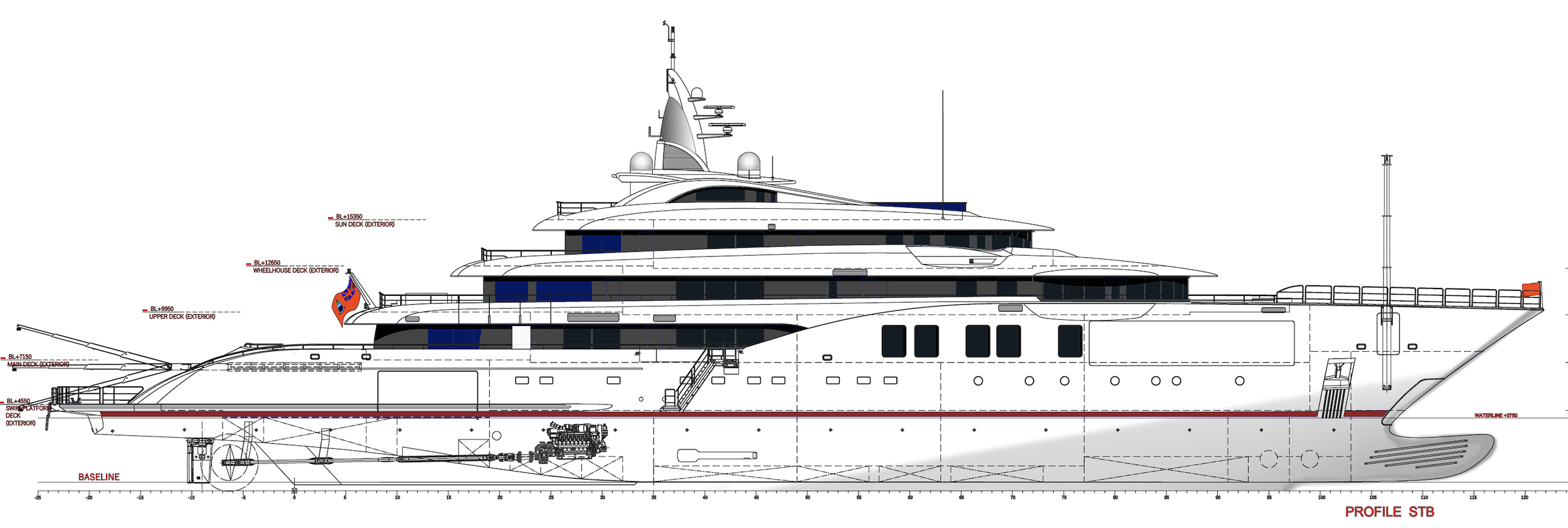At 88m and 2,560 GT this yacht has spaces for every occasion, from the beach club in the lower level to the beautiful lounges that are connected with a famous Dunya mezzanine. Set to be one of the most impressive superyachts on the water, the industry eagerly awaits her completion in 2028.